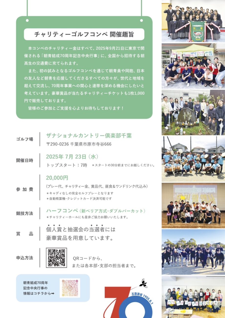 第3段階の最終ゴールは、9月21日に予定されている「朝青結成70周年記念行事」です。
